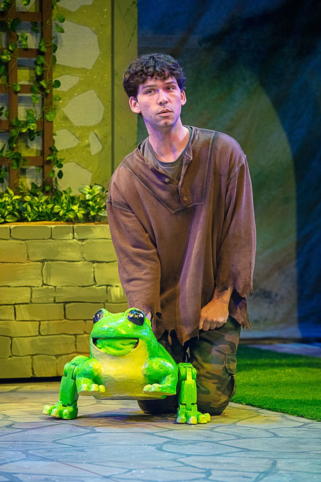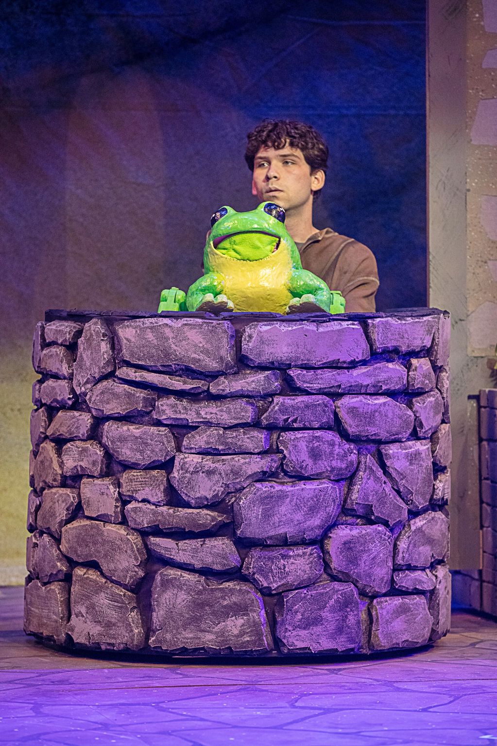 Frog - paper mache, plaster gauze, resin laminate, wood, fleece, elastic, acrylic, clear coat
